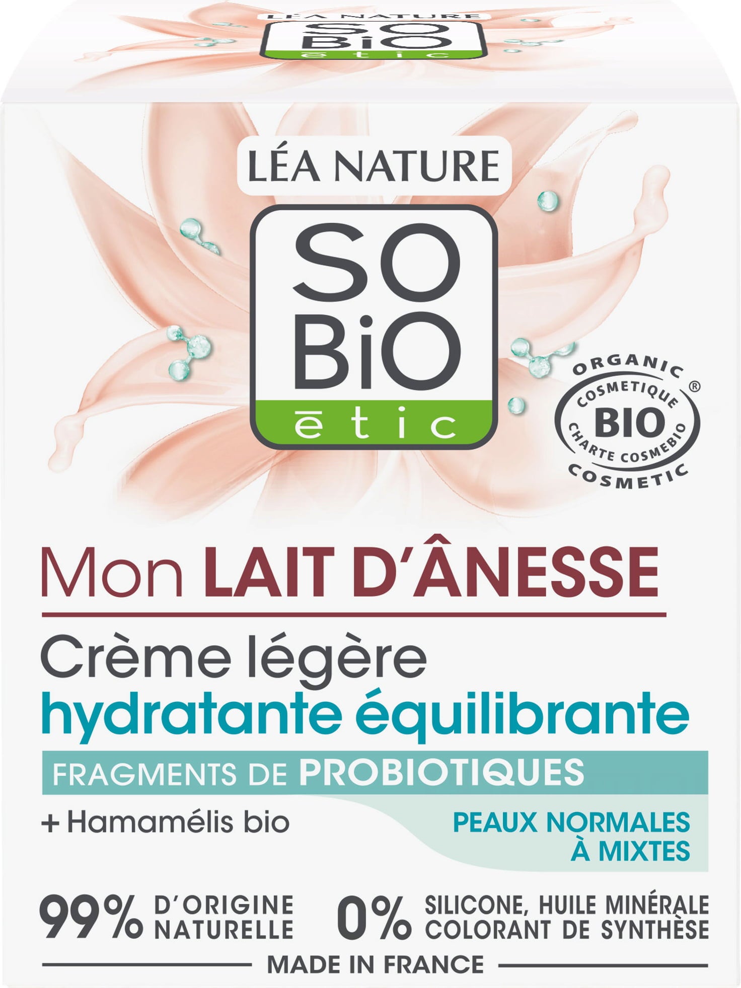LÉA NATURE SO BiO étic Crème Légère Hydratante Mon Lait d'Ânesse, 50 ml