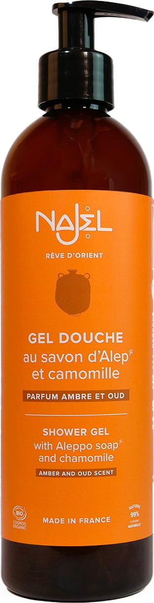 Najel Gel Douche au Savon d'Alep Parfum Ambre & Oud, 500 ml