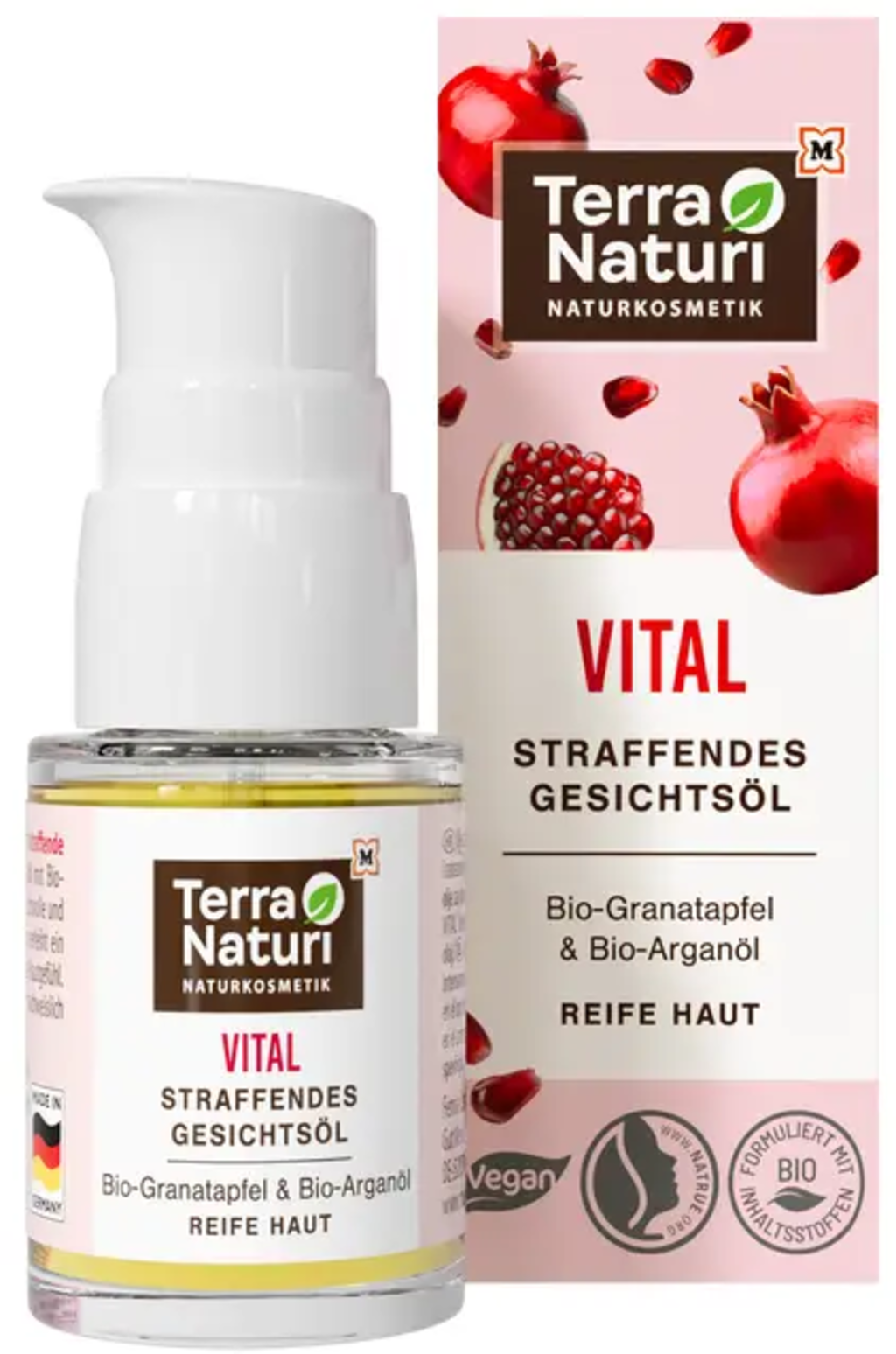 L'Huile Visage VITAL de Terra Naturi chouchoute les peaux matures et exigeantes avec un soin tout particulier. Avec de l'huile de grenade bio et de l'huile d'argan bio, elle soigne et lisse merveilleusement la peau et laisse une sensation soyeuse de bien-être.
