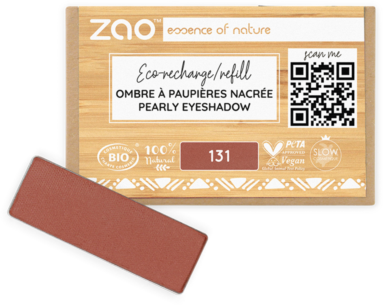 Zao Recharge Ombre à Paupières Rectangle, 131 Sienna Earth (1,30 g)